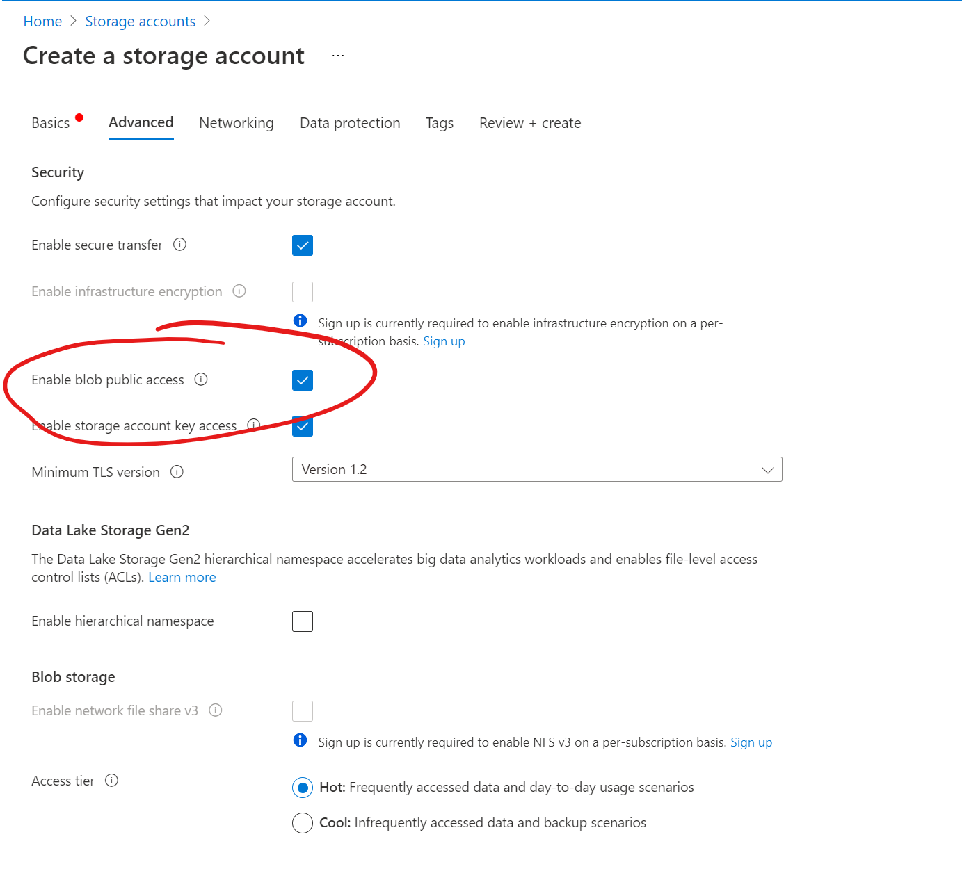 Once you have a Storage account, you’ll need a blob creating within there. Note down the names of both the storage account, and the blob as these will be need in the subsequent steps.
